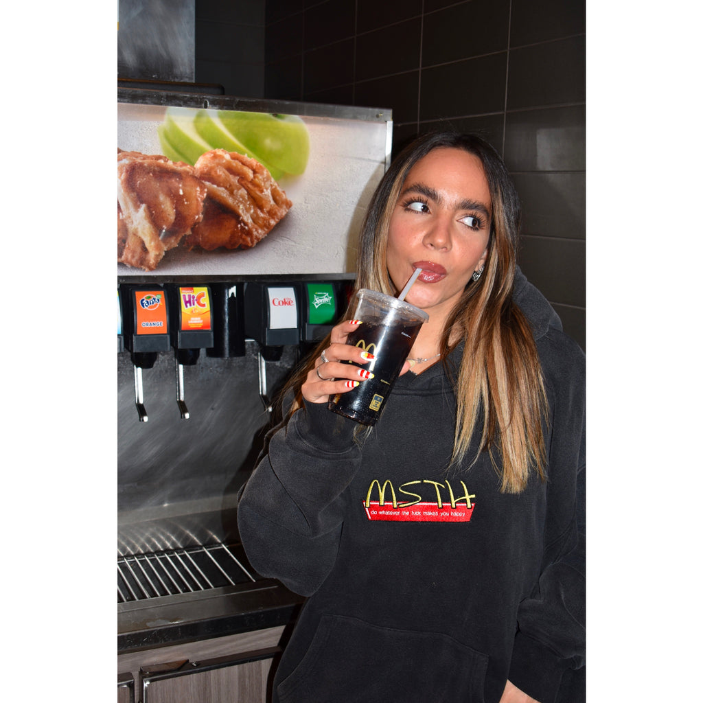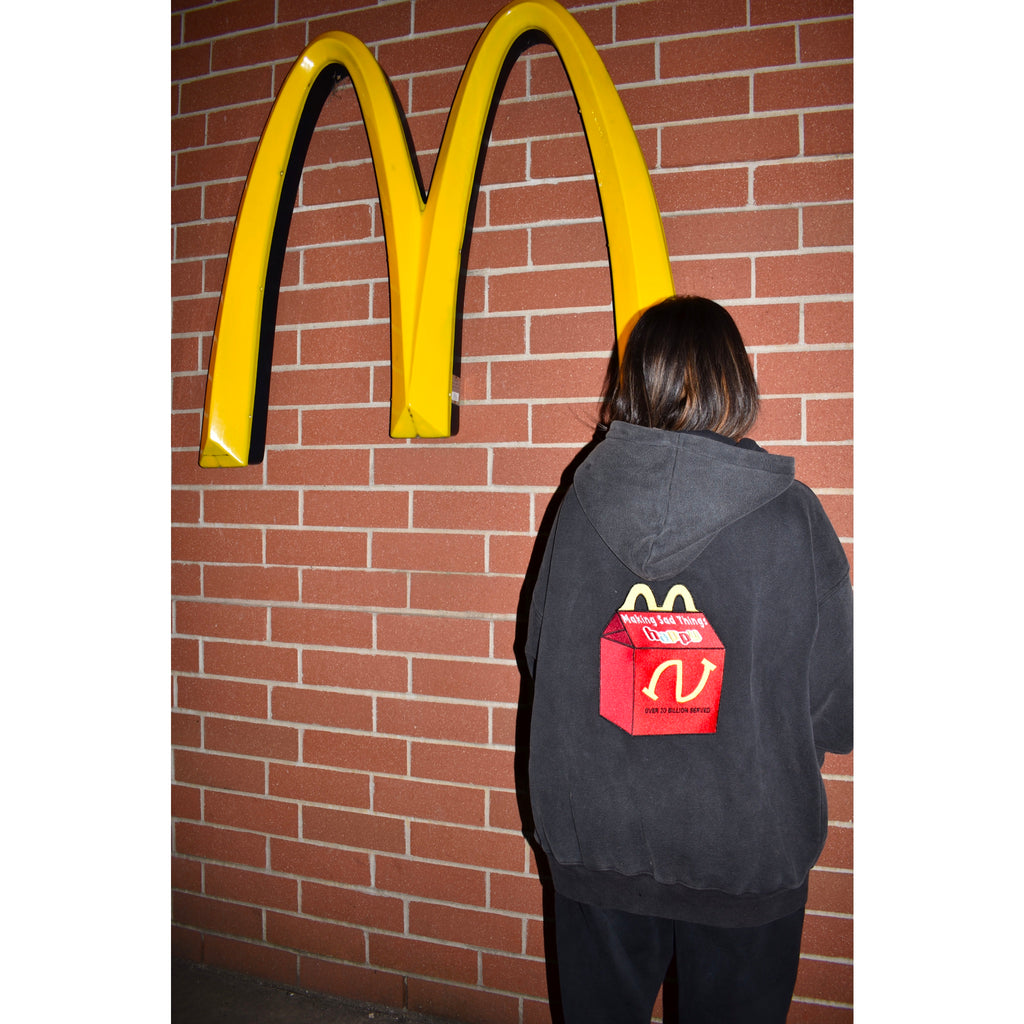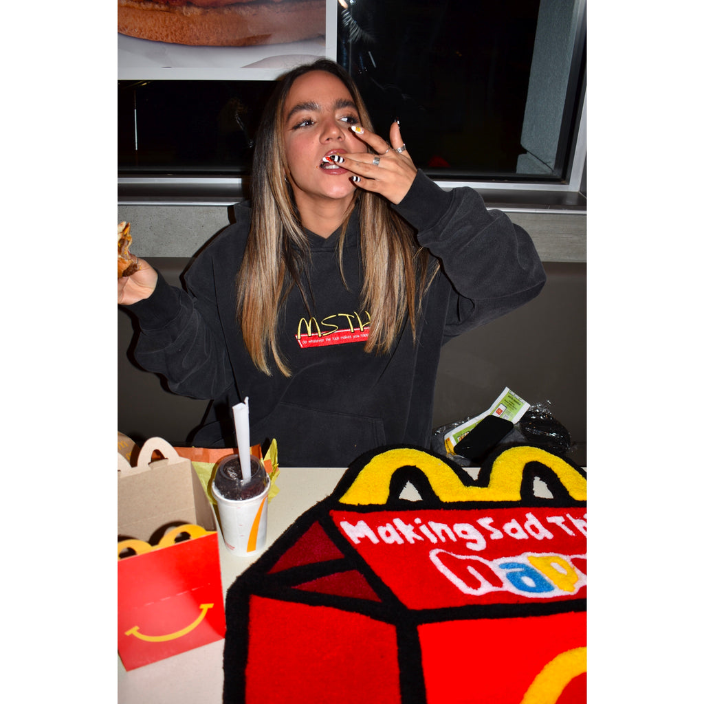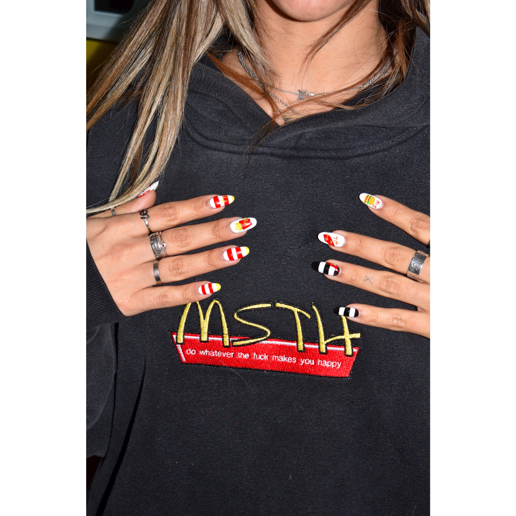 Embroidered MSTH sign on front + Making Sad Things Happy Meal on back.
